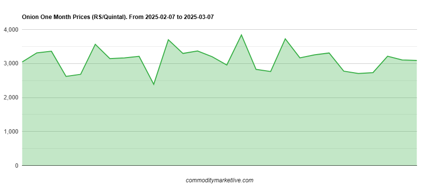 | Onion - Bellary | Paramakudi(Uzhavar Sandhai ) APMC | Ramanathapuram | Tamil Nadu | ₹32.50 | ₹3,250.00 | ₹3,500.00 - ₹3,000.00 |