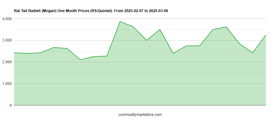 | Rat Tail Radish(Mogari) - Other | Surat APMC | Surat | Gujarat | ₹135.00 | ₹13,500.00 | ₹22,000.00 - ₹5,000.00 |